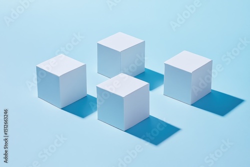 © Salsabila, Obraz premium Four white cubes arranged on a light blue surface, casting distinct shadows