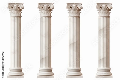 © nsit0108, Fototapeta premium Four white marble ionic columns standing on a clean white background
