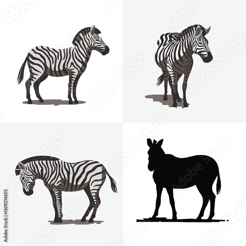 © Swapna graphics, Fototapeta premium Four zebra illustrations with varied styles and poses