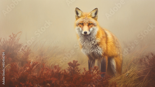 © EltaMax99, Fototapeta premium Fox among explosions of multi colored paint. Multicolored fluid. AI Generative.