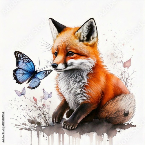 © takaakimiyashita, Obraz premium Fox and Butterfly in Harmony