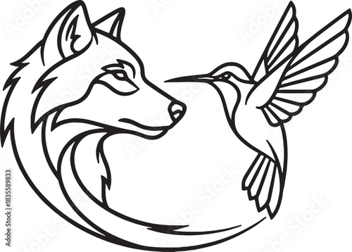 Obraz premium Fox and Hummingbird Logo Elegant Animal Line Art Vector Symbol