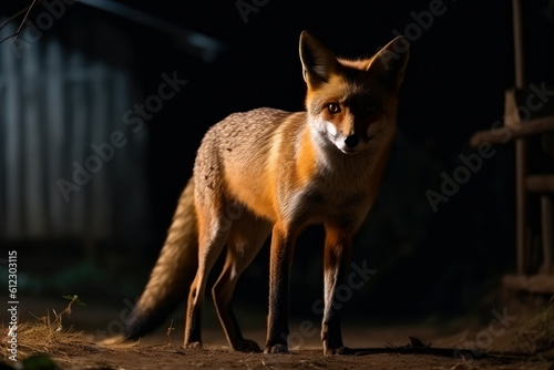 Naklejka premium Fox at night in countryside village area. Generative AI