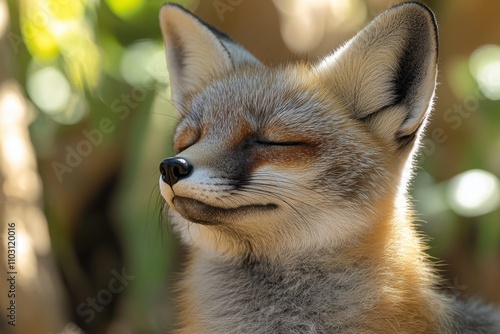 Obraz premium Fox basking in sunlight with a relaxed expression, suitable for...
