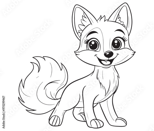 © Md.Riaz, Obraz premium Fox cartoon character Kids colouring Page Cute Outline Drawing