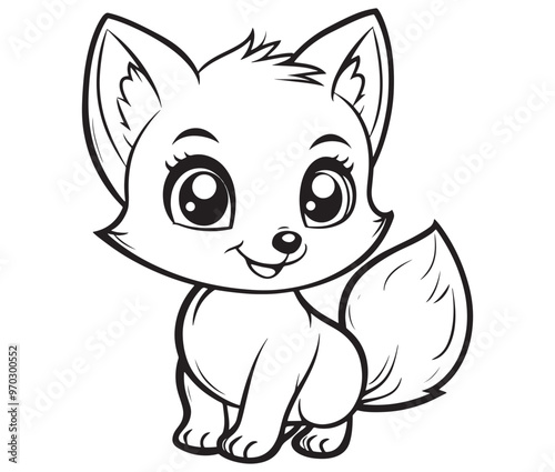 © Md.Riaz, Obraz premium Fox cartoon character Kids colouring Page Cute Outline Drawing