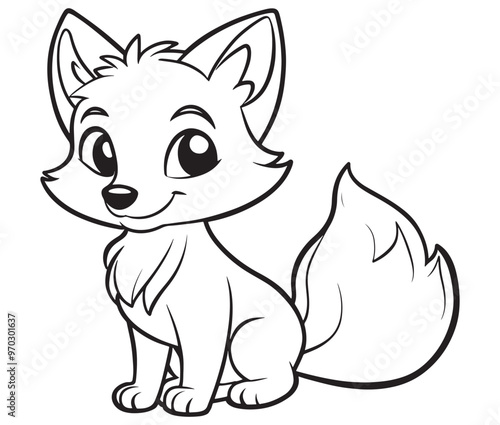 © Md.Riaz, Obraz premium Fox cartoon character Kids colouring Page Cute Outline Drawing