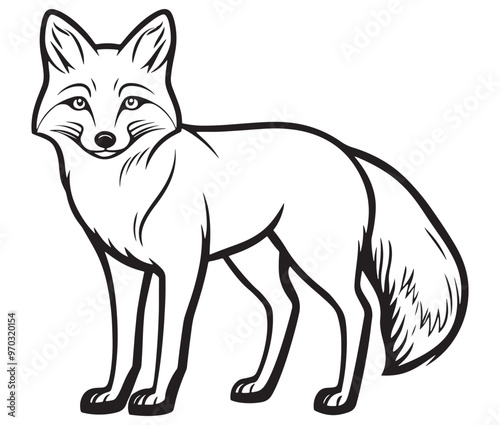 Fototapeta premium Fox cartoon isolated on white background outline drawing