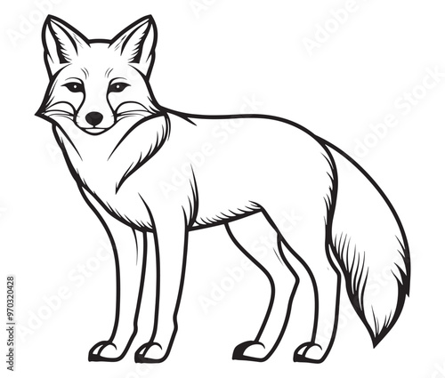 Fototapeta premium Fox cartoon isolated on white background outline drawing
