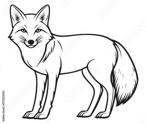 Fototapeta premium Fox cartoon isolated on white background outline drawing