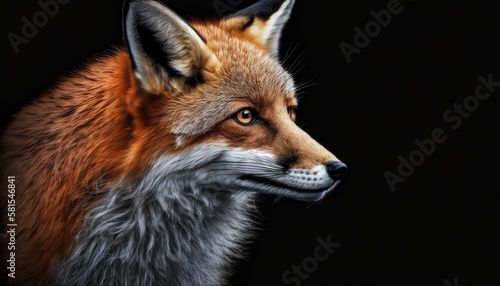 © AdriFerrer, Fototapeta premium Fox close-up on black background. Generative AI