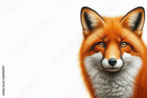 © Andbiz, Naklejka premium Fox close-up on white background. Space for text.