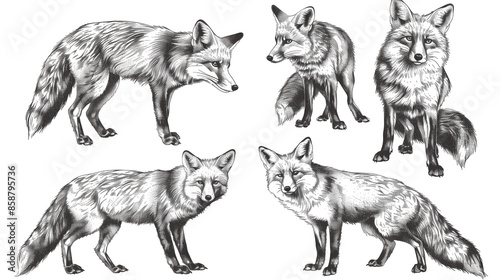 © SizeSquare's, Fototapeta premium fox crafty illustration.etching engrave