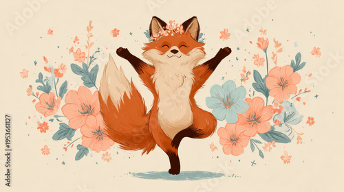 © Canvas Alchemy, Fototapeta premium Fox dancing among flowers
