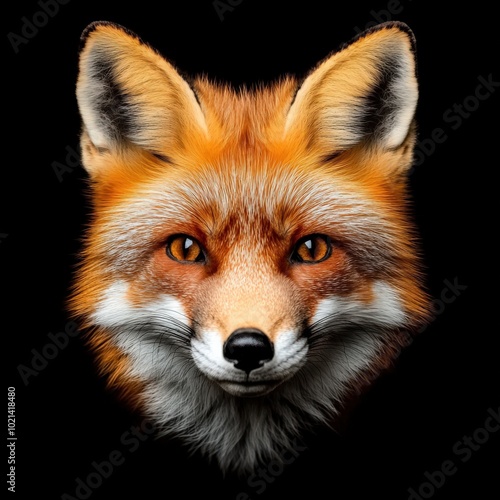 © Vlad, Fototapeta premium Fox Face. Red fox on Black Background. Wild Animal Predator Muzzle