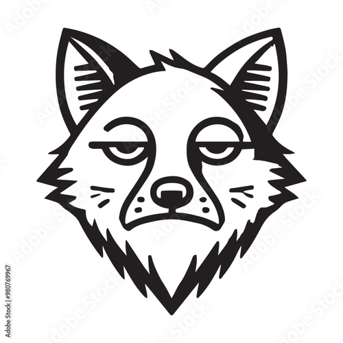 © Shineoxstock, Obraz premium Fox face vector illustration in black and white - Fox Clipart Design - Fox's head outline logo concept