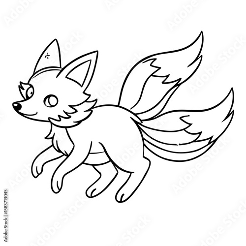 © coloringpage, Fototapeta premium Fox Flying Through the Night Sky Coloring Page