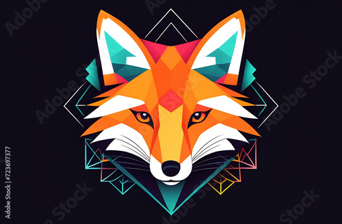 © Gulshat, Obraz premium fox head graphic style, multi-colored on a black background