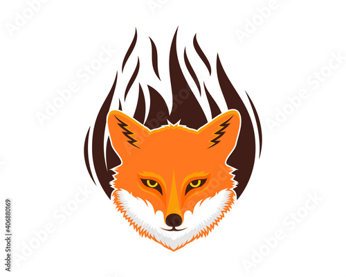 Obraz premium Fox head with fire flame behind
