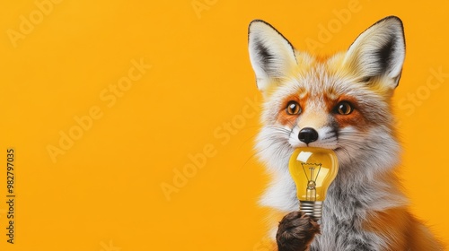 © AiAbstract, Obraz premium Fox Holding Light Bulb on Yellow Background