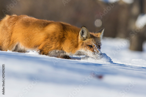 © Mircea Costina, Fototapeta premium fox hunting squirrels in winter
