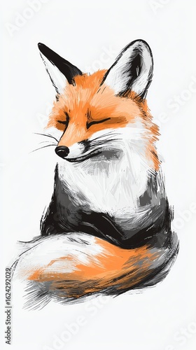 © LittleDreamStocks, Obraz premium Fox in a curled sleeping position, delicate single-line drawing, elegant simplicity