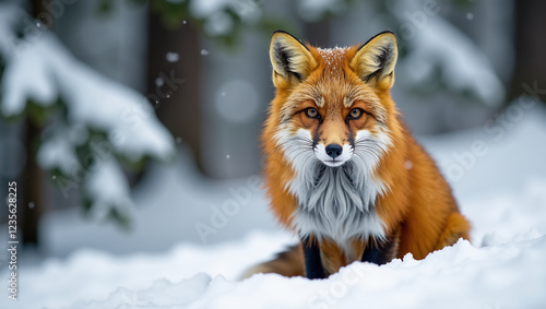© PSingh, Obraz premium Fox in a Snowy Forest