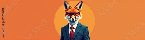 © kramynina, Obraz premium Fox in a suit and tie with glasses on animal background