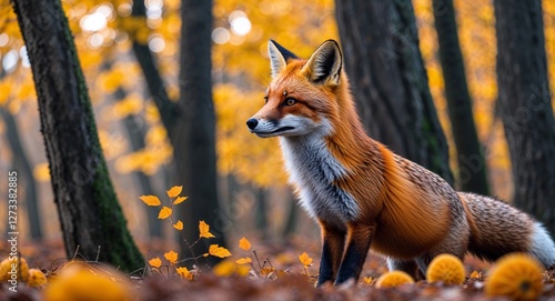 © sevenSkies, Fototapeta premium Fox in autumn forest background side view portrait