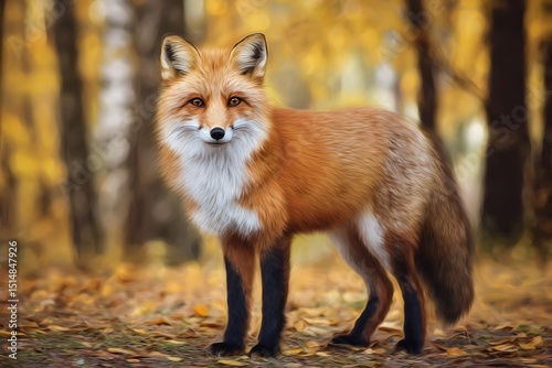 © sumarno, Fototapeta premium Fox in autumn woodland portrait view