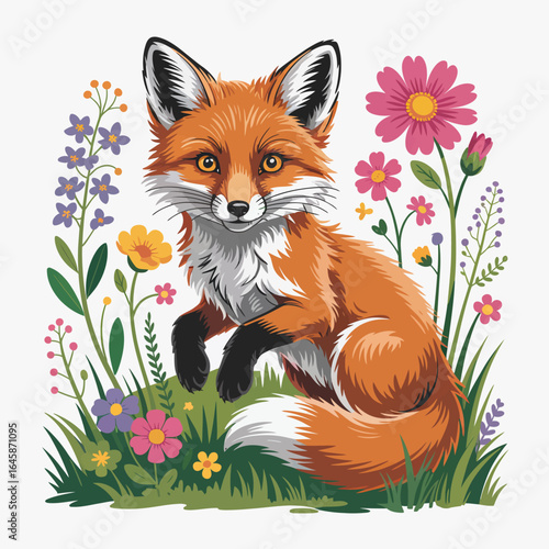 Obraz premium Fox in Flowers Illustration