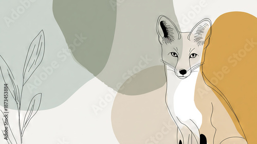 Naklejka premium Fox in Soft Pastel Background with Leaf