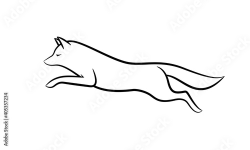 © Kas Tan, Fototapeta premium Fox jumping icon. Line art vector illustration. Minimalist concept.