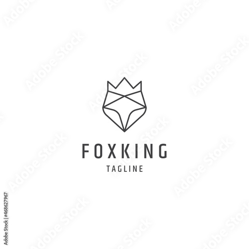 Naklejka premium Fox king head line logo design template