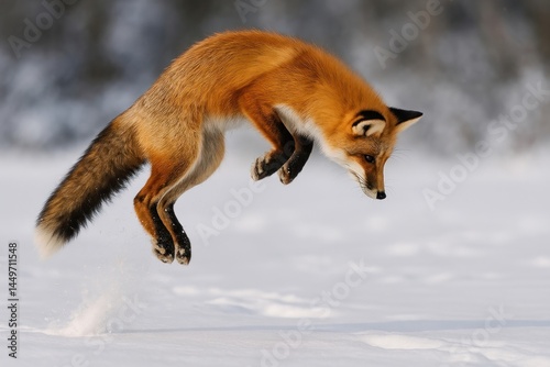 Obraz premium Fox leaping snowy landscape