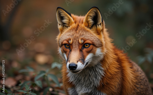 © Irina, Fototapeta premium Fox looking intently in a natural forest setting