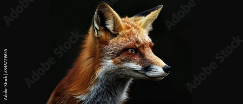 Fototapeta premium fox looks away against the black backdrop, its silhouette blending into the...