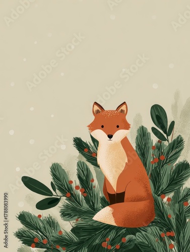 Obraz premium fox on a Christmas background illustration.