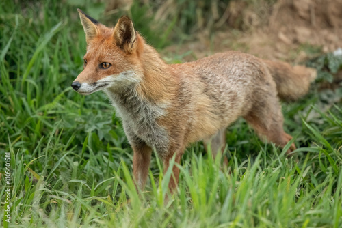 © Digital Nature , Fototapeta premium Fox on grass, close up