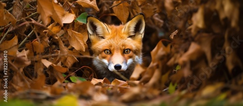 Fototapeta premium Fox Peeking Through Leaves