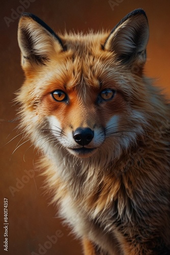 © Uncanny Valley 😱, Fototapeta premium Fox Portrait: A Detailed and Colorful Illustration in Orange Style