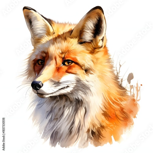 Obraz premium Fox portrait in watercolor style with striking details on a white backdrop