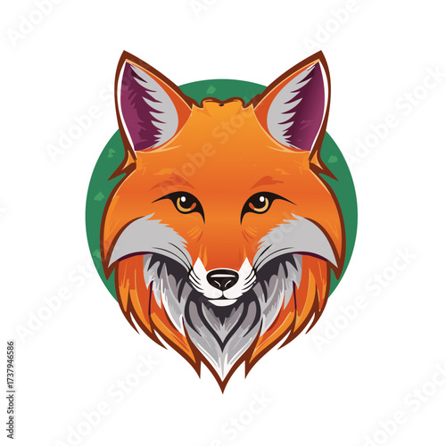 © Pedosdesign, Obraz premium Fox Portrait with Green Circle Silhouette Orange and Gray Illustration