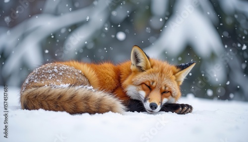 Obraz premium Fox resting peacefully in snowy winter