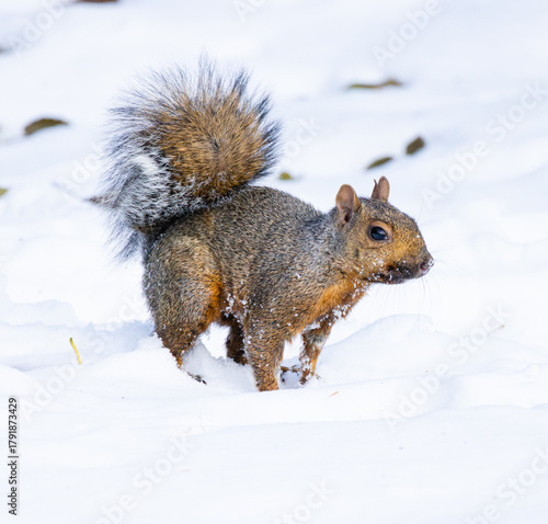 © James, Fototapeta premium Fox Squirrel (Sciurus niger) Foraging in Snowy Forest Scene