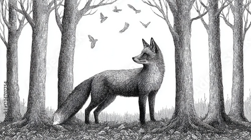 © Nurul, Fototapeta premium Fox standing in a forest scene.