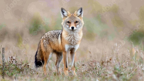 Fototapeta premium Fox standing in grasslands, wildlife safari