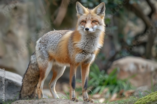 Obraz premium Fox standing on a natural ground, in an outdoor habitat.