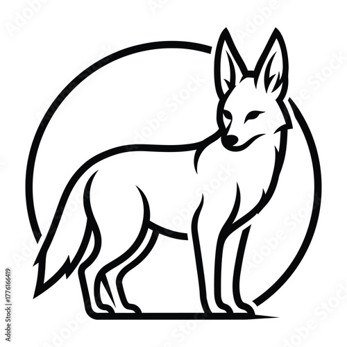 © Vector_Nest, Fototapeta premium Fox standing outline in circle vector illustration