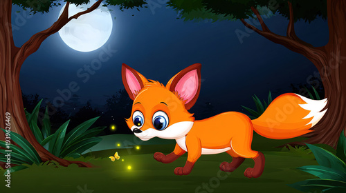 © Anna, Fototapeta premium Fox walking in a moonlit forest at night